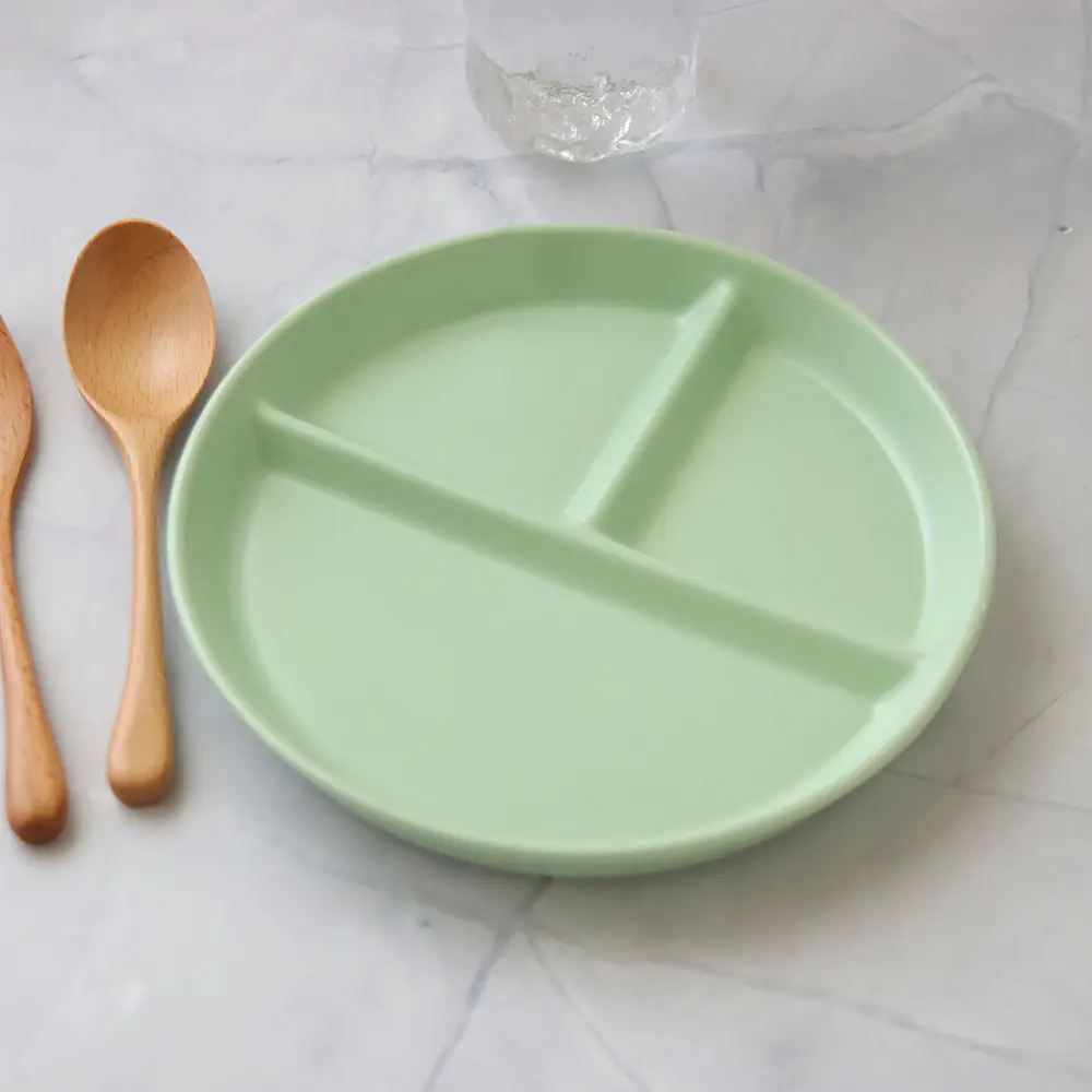 質感陶瓷7.8吋三隔【圓】盤 綠 |20×2.5cm