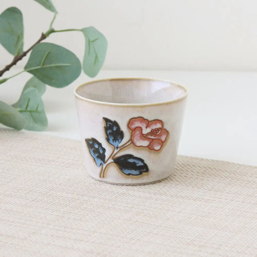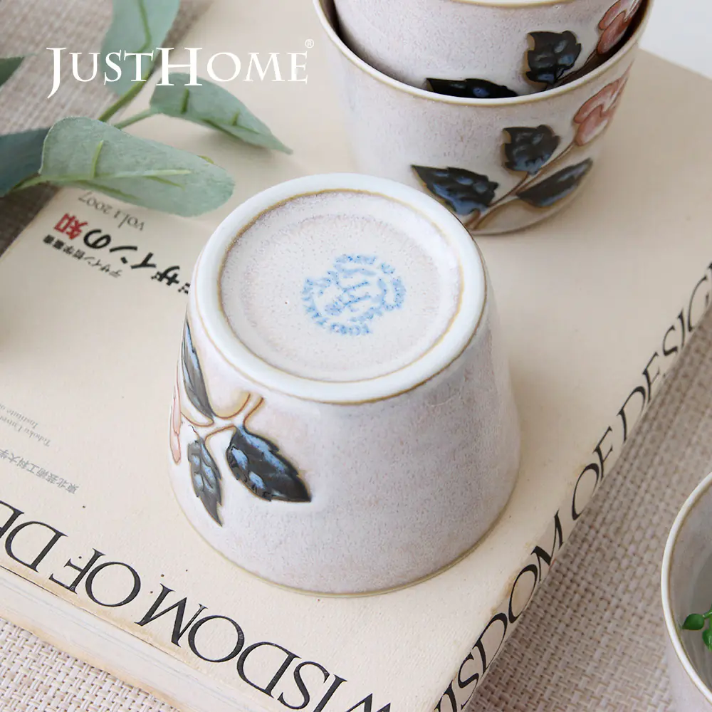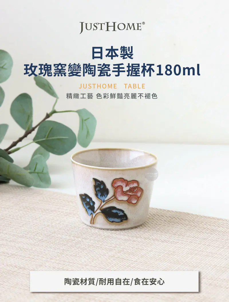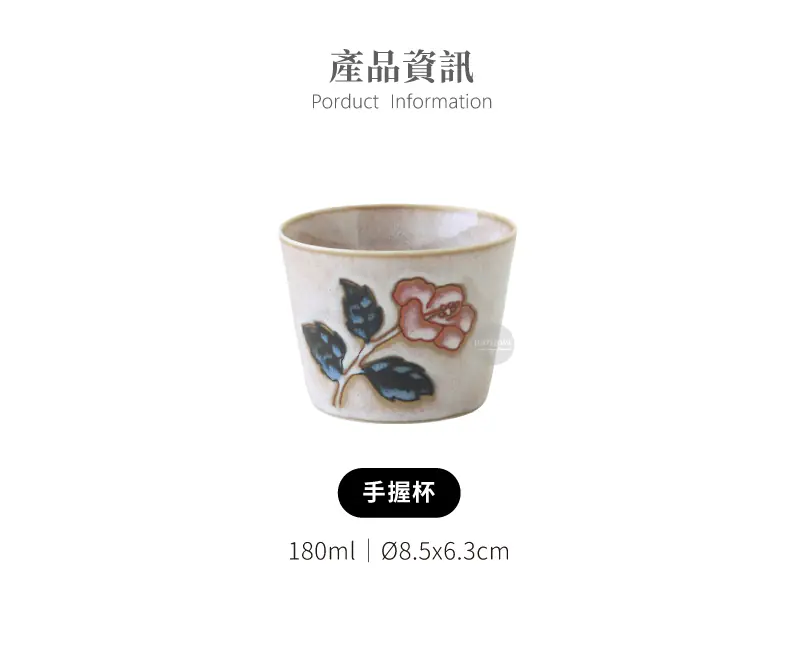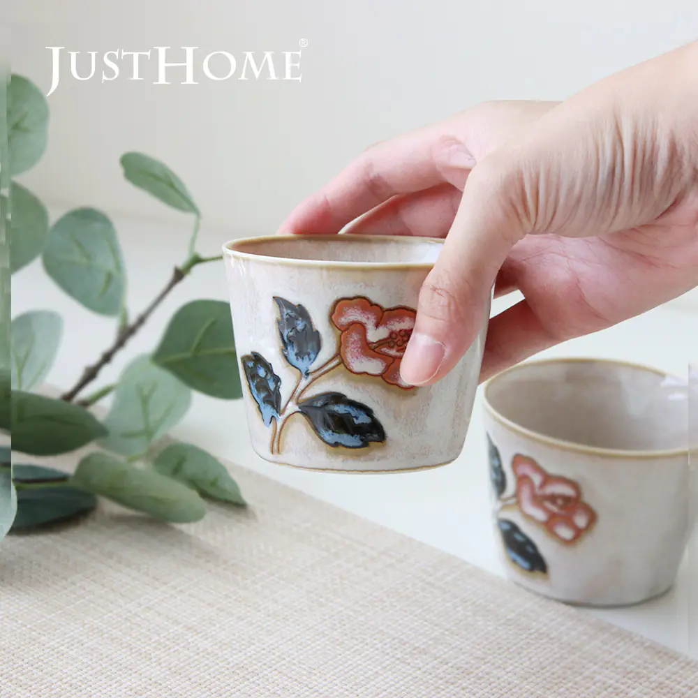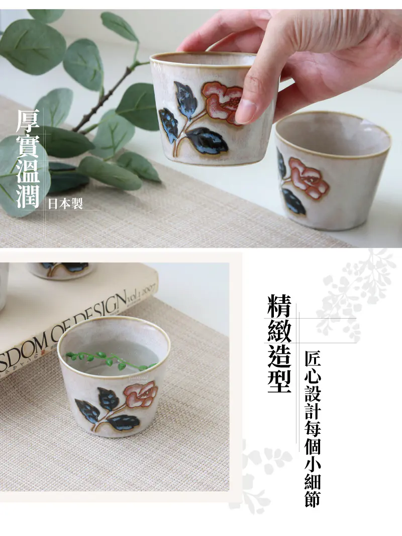 日本製赤花陶瓷手握杯180ml|8.5×6.3cm