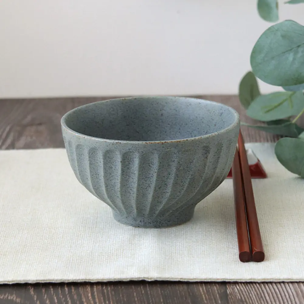 日本製粗條紋陶瓷4.5吋碗330ml 藍|11.5×6.5cm