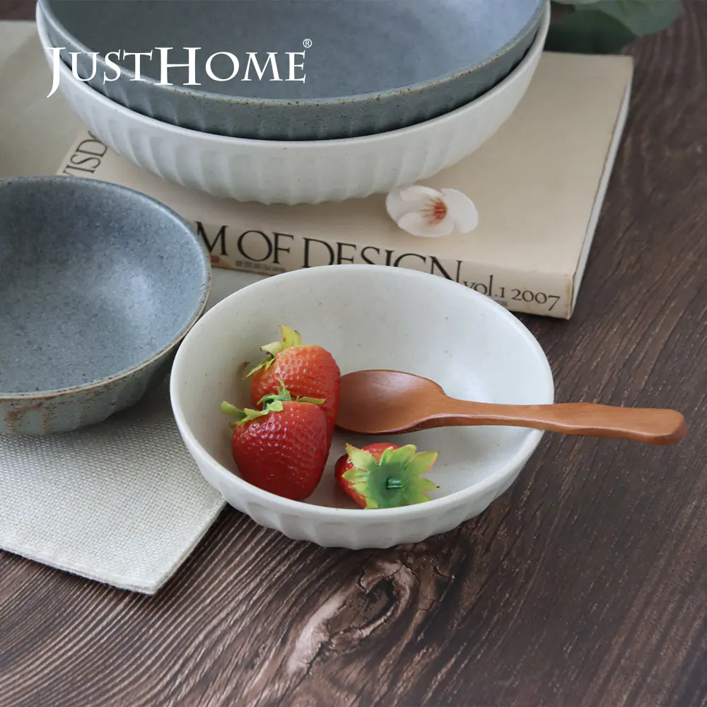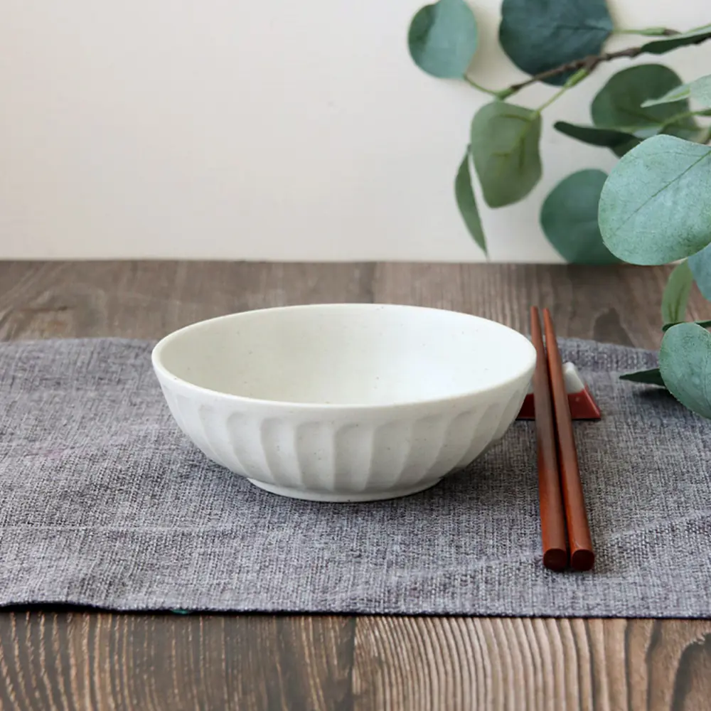 日本製粗條紋陶瓷5吋缽280ml 白|13x4cm