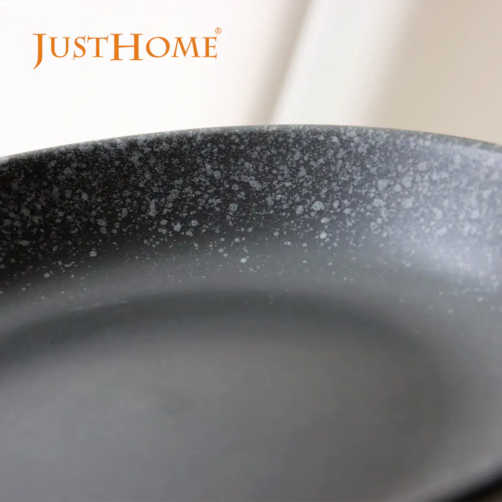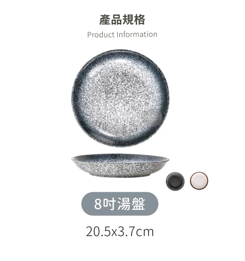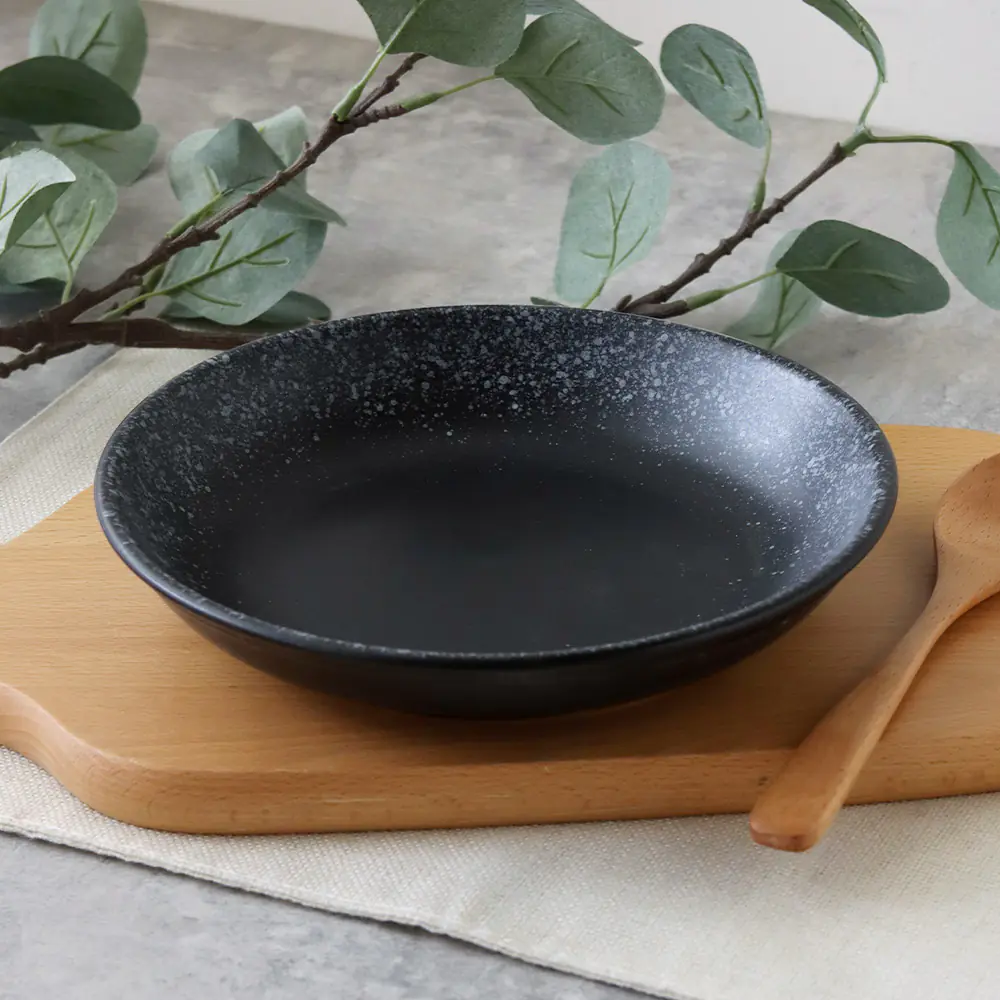 日式粗陶8吋湯盤 墨雪|20.5×3.7cm