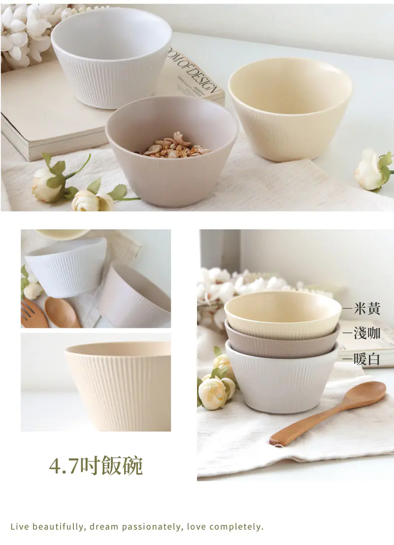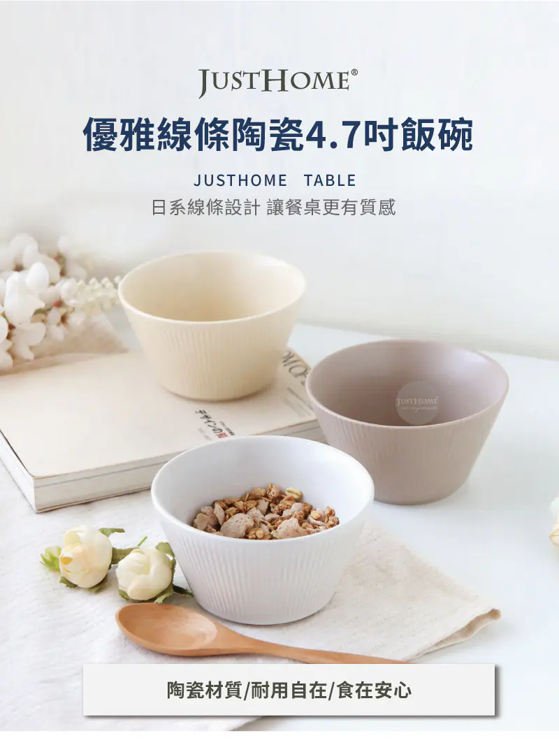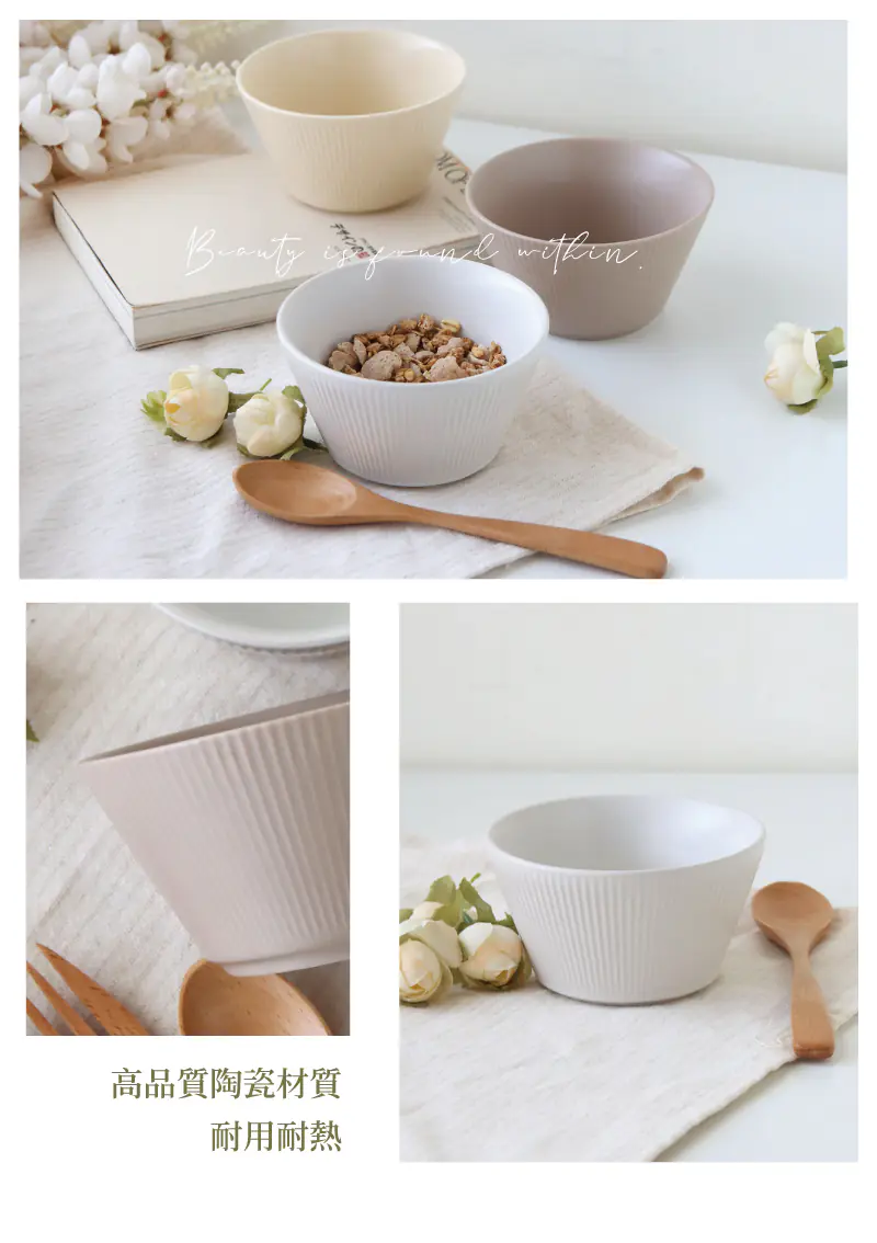 北歐線條4.7吋陶瓷飯碗340ml 淺咖 |12×6.7cm