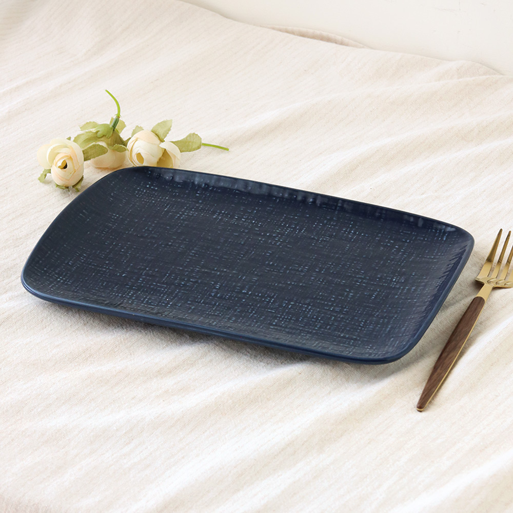 羅森織紋陶瓷10.5吋長方盤 藍| 27.2×18.7×2.3cmH
