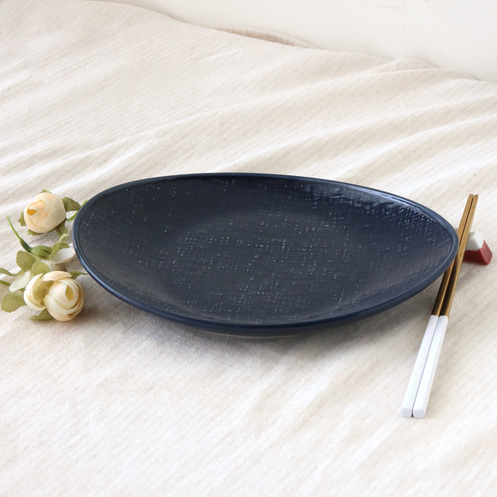 羅森織紋陶瓷10吋橢圓盤 藍 |25.7×20.2×3.8cmH