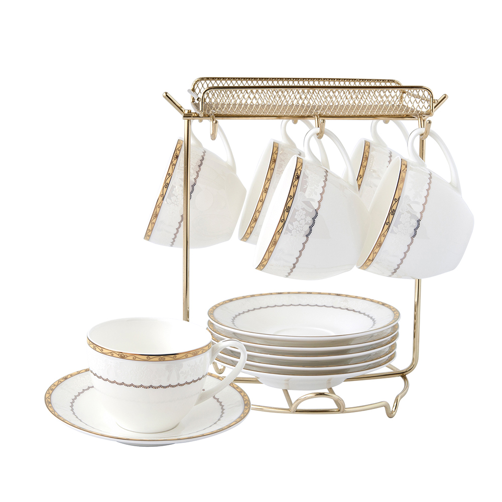 每組有6個骨瓷咖啡杯盤組,悠閒享受午茶時光。