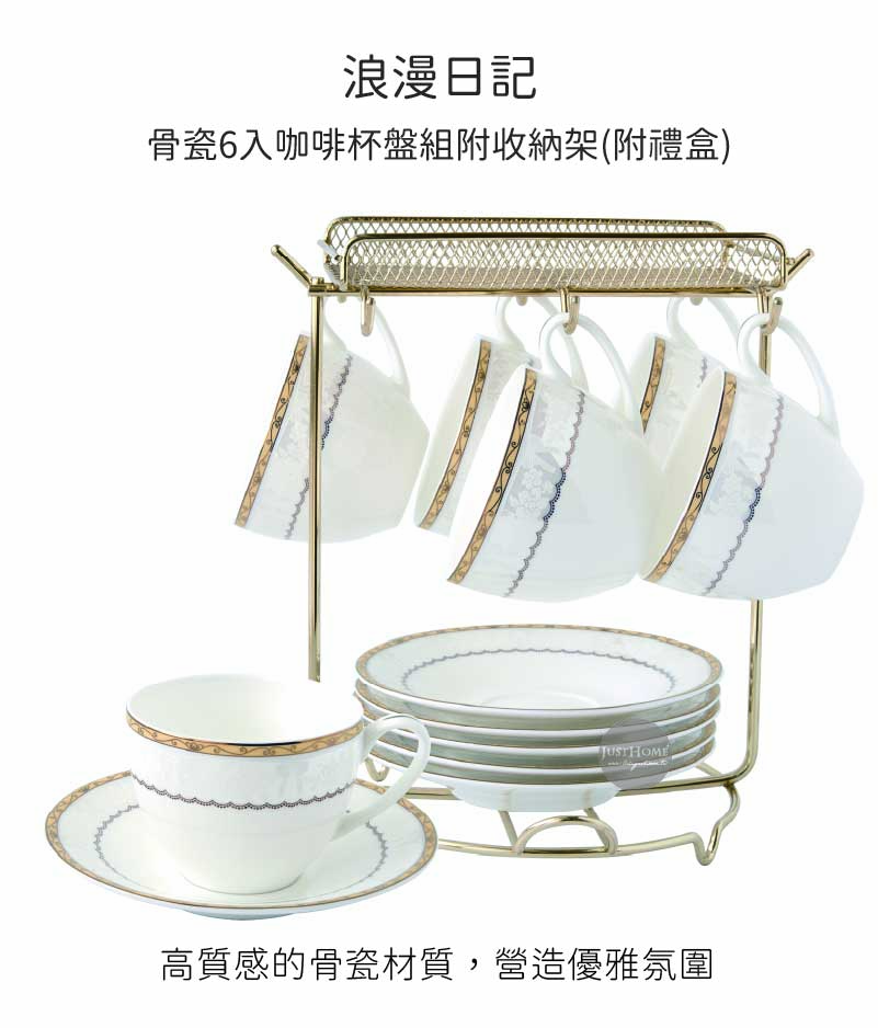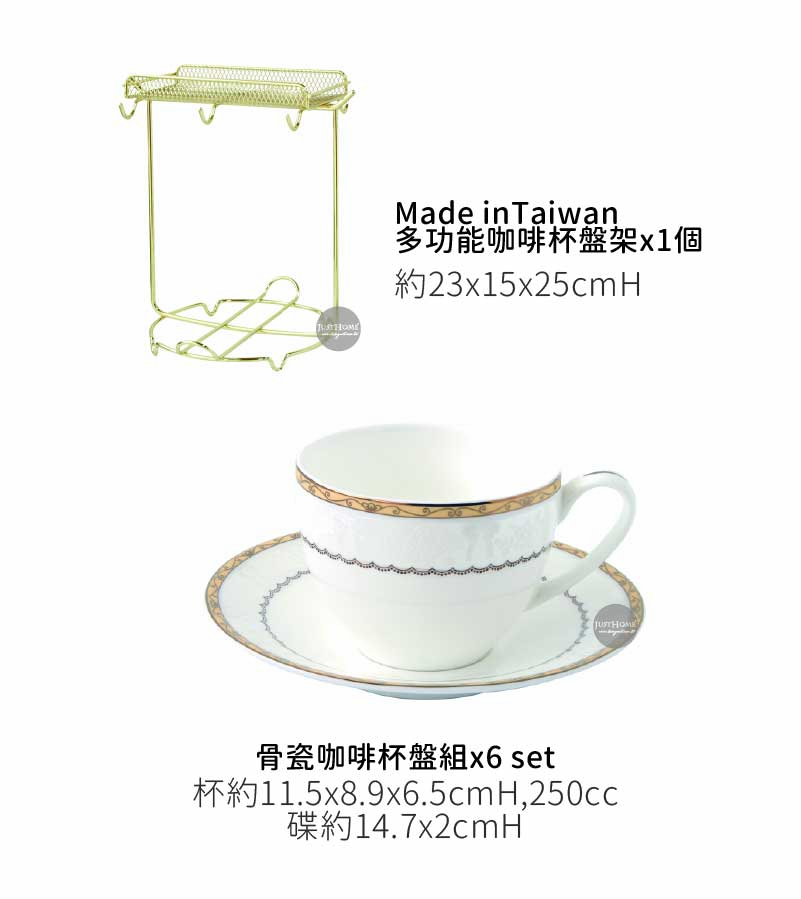 內容:咖啡杯盤組x 6 組、多功能咖啡杯盤架x1個