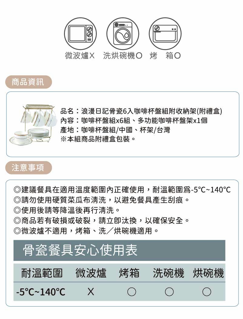 4.微波爐、烤箱不適用;洗(烘)碗機適用。