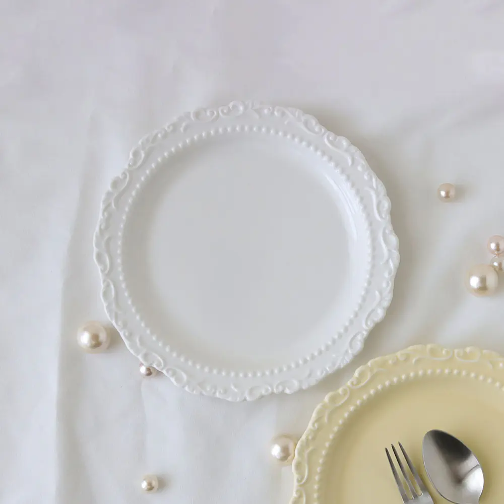 法式浮雕陶瓷7吋平盤 白|17.7x2cmH