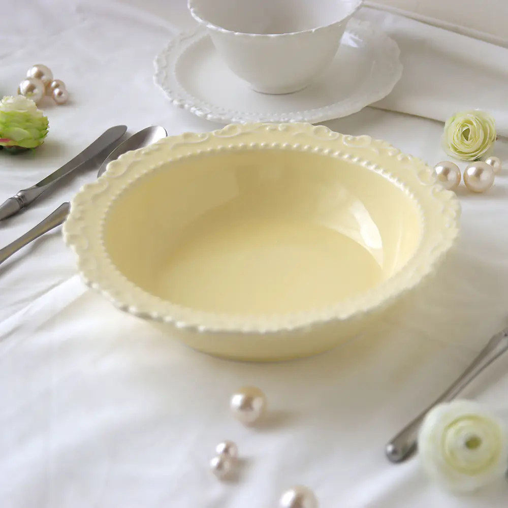 法式浮雕陶瓷9吋湯盤 黃|23×5.3cmH